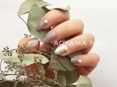 シアーグレイッシュパープルとマグネットネイル☆大きめなパールをアクセントに仕上げました☆