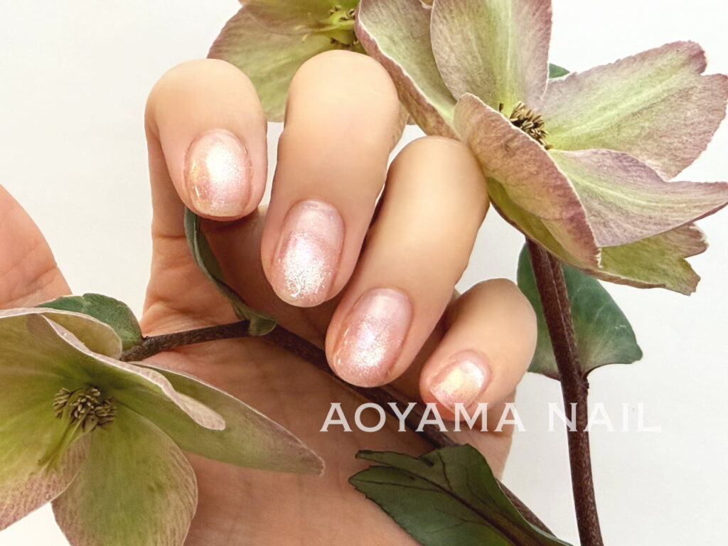 先端にくすみピンクラメカラーをのせてきれいな爪先に♪